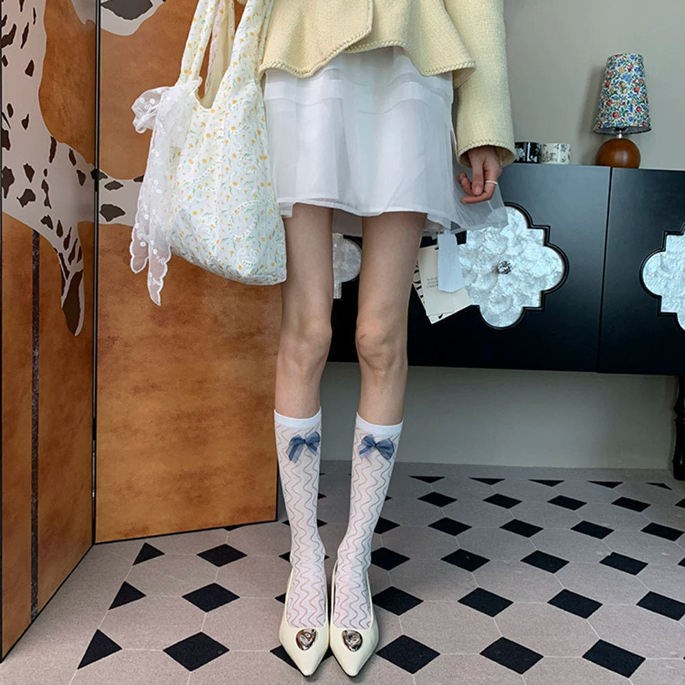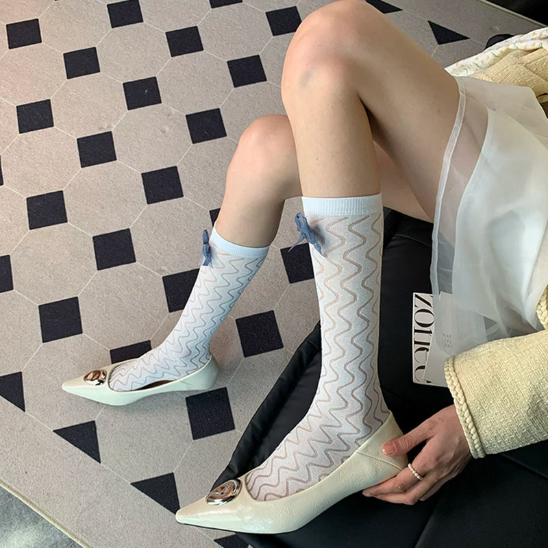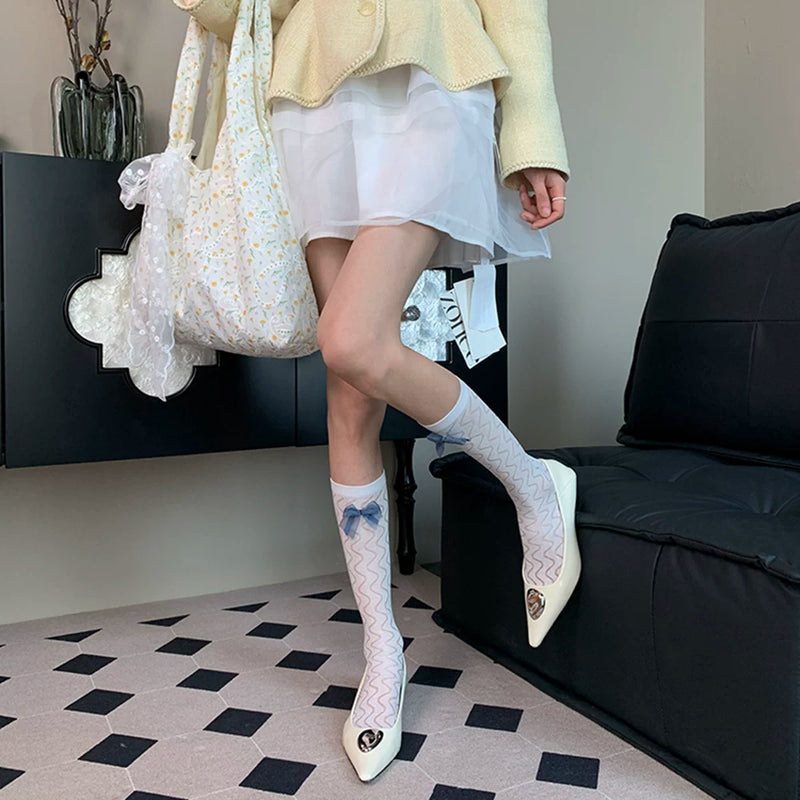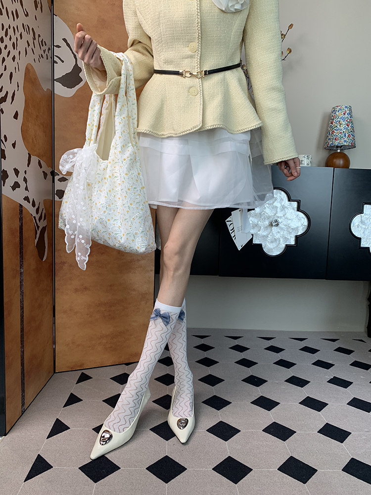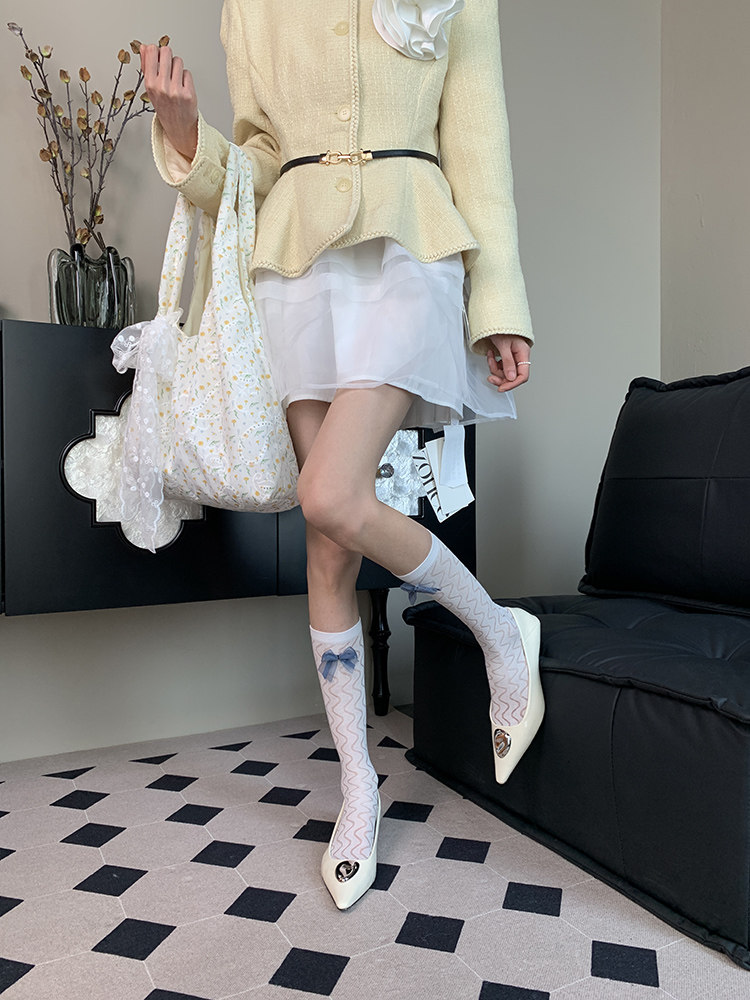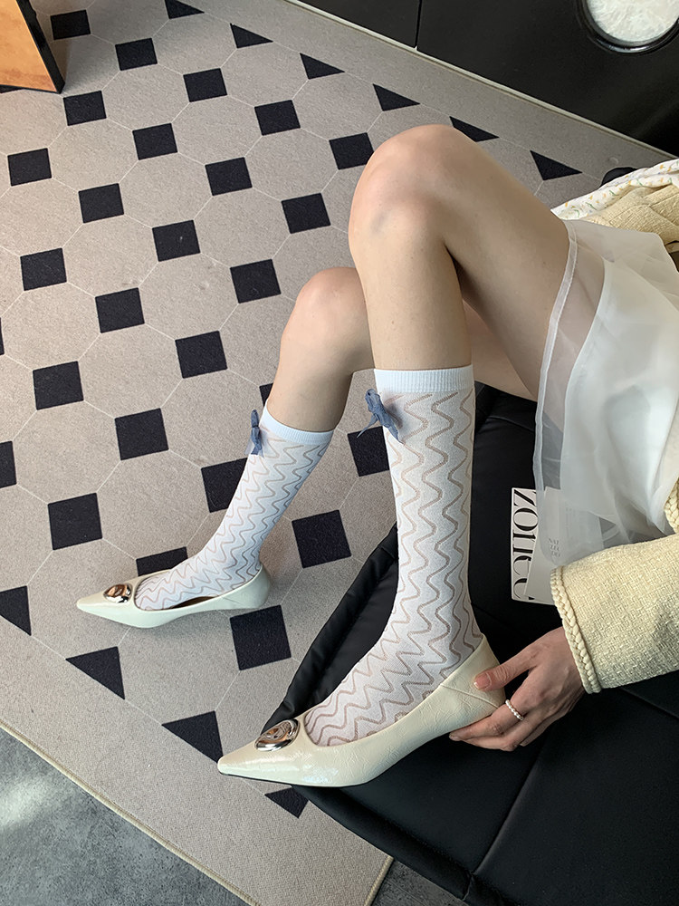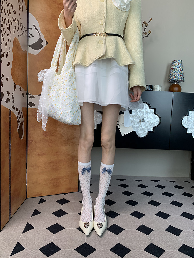 "Just slightly drunk ~" 2025 summer new French elegant gentle light ripple bow female white calf