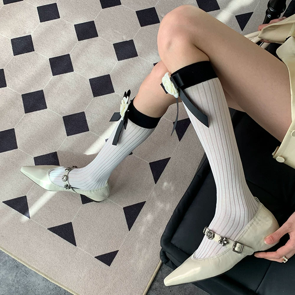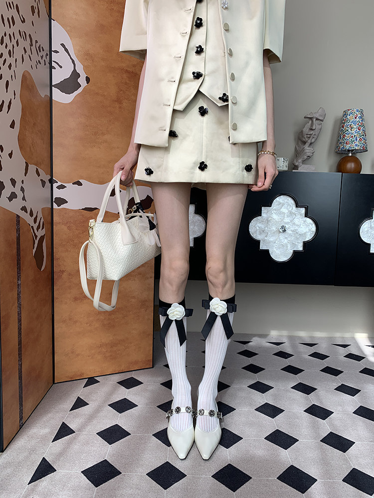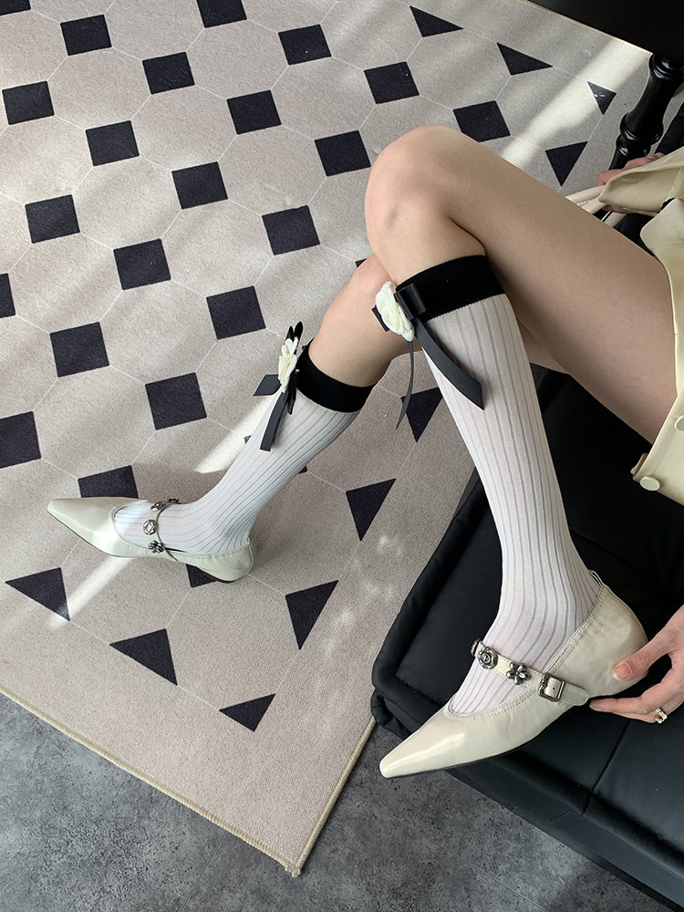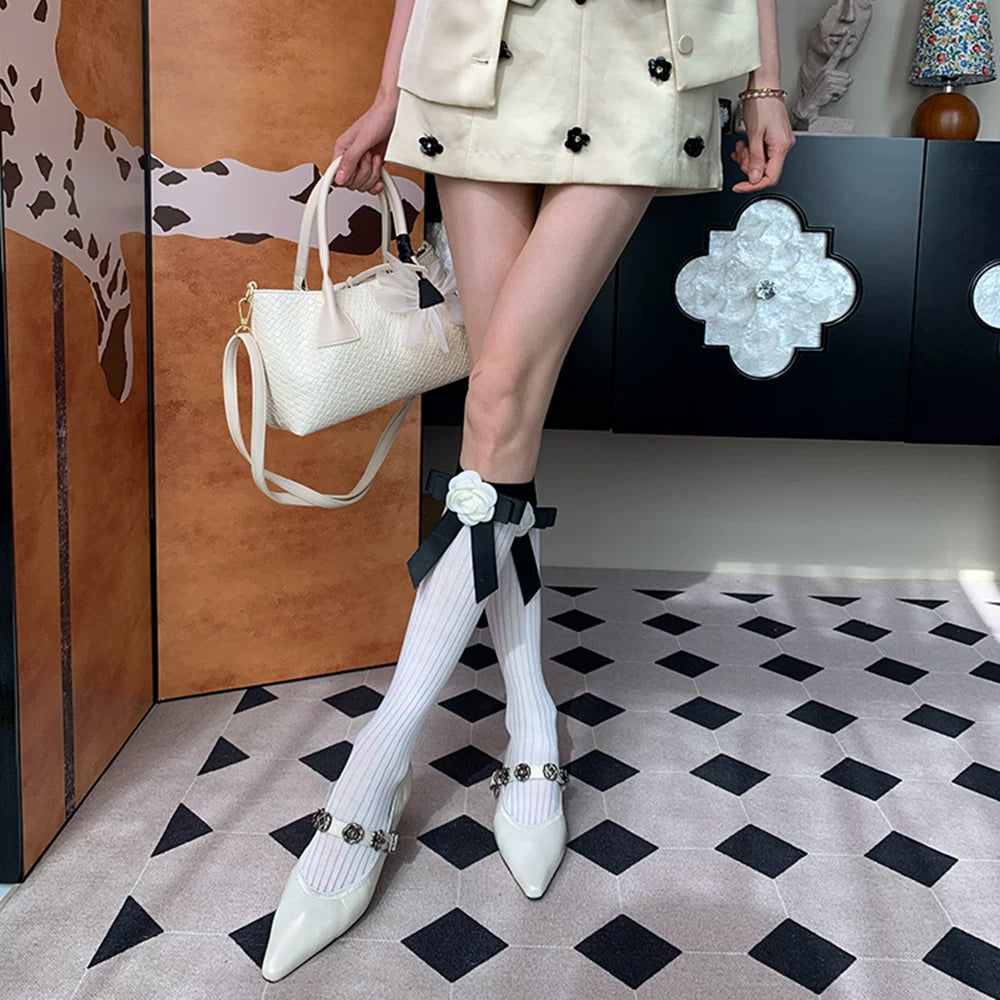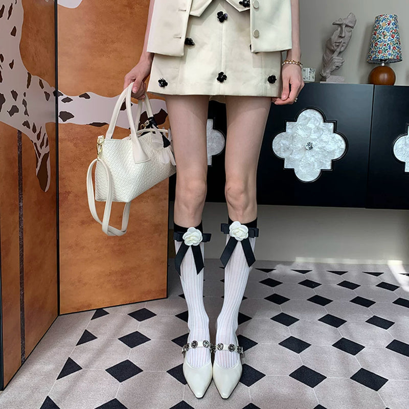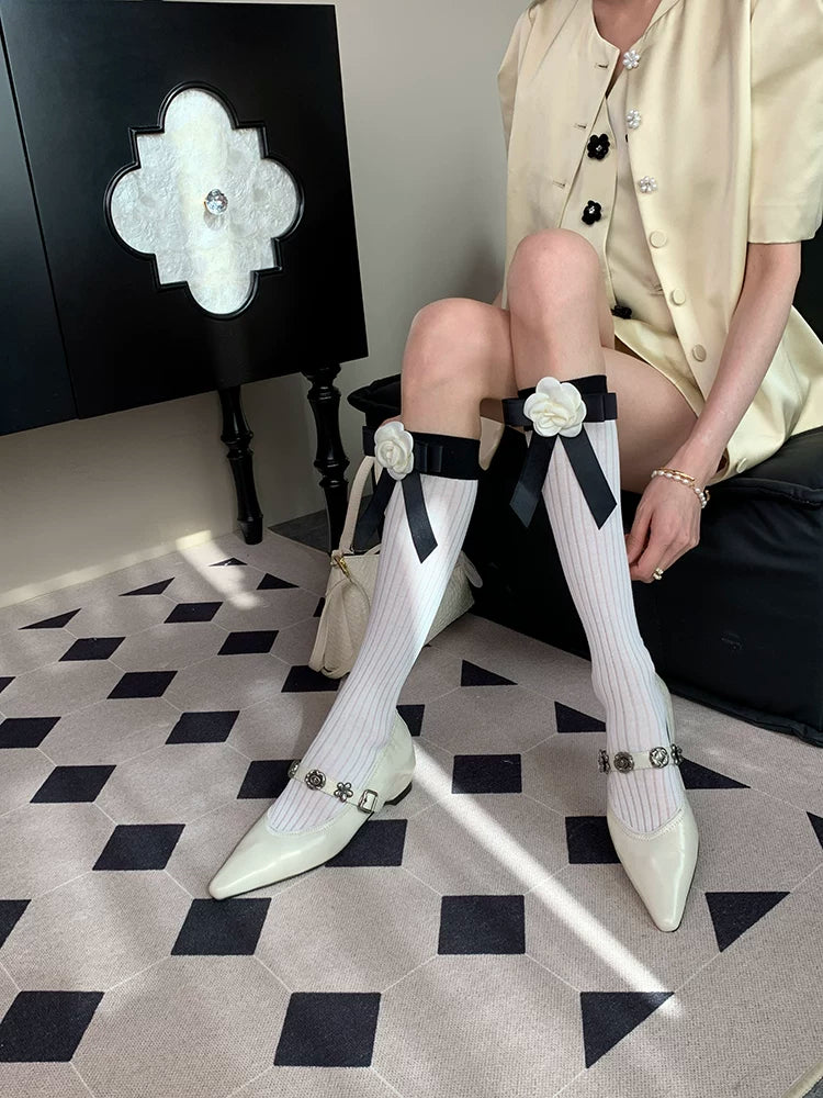 "Not yet honored ~" 2025 summer new French romantic elegant charm niche white flower bow calf