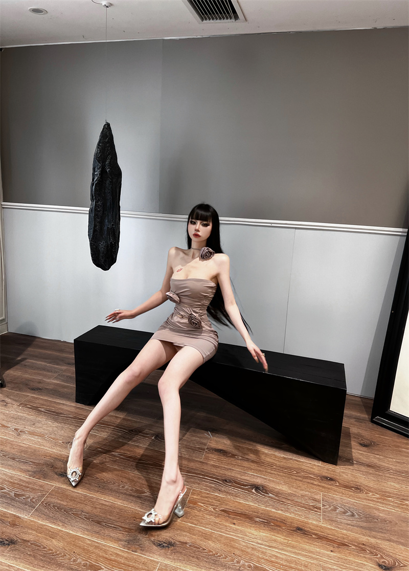 Summer fried street hot girl sexy three-dimensional flower design sense niche waist short skirt tube top pure desire beach neck dress